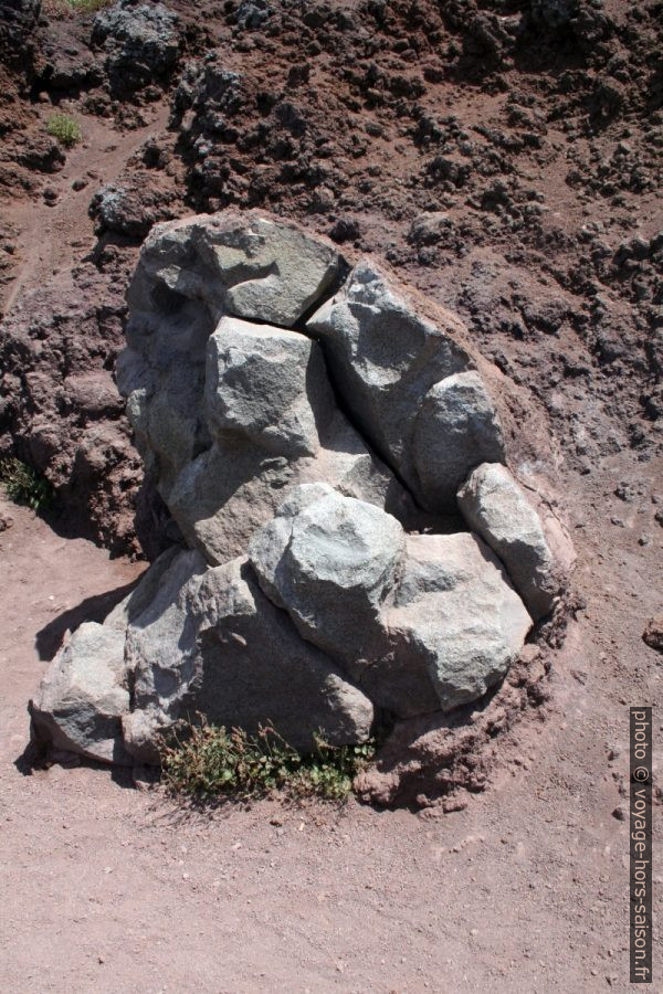 Oui, c’est plus une visite qu’une randonnée. Effectivement, notre plan de monter à pied par le Valle del Gigante an nord-est du volcan n’aboutit pas. Il faut prendre un permis à la maison du parc national sur la route qui monte, or celle-ci est fermée alors que les horaires affichés la disent ouverte. Nous cherchons quand même le début du chemin et d’autres alternatives, mais tous ces accès sont grillagés et des panneaux interdisent l’accès à cause du danger de feux de forêt. Or, il n’y a presque de forêt à cette altitude et il a beaucoup plu dernièrement. Vu que la maison est fermée, il s’agit plutôt du manque chronique de personnel en Italie. Ceci dit, les chemins ne sont pas faciles, ils passent sur des gros blocs couverts de végétation piquante.