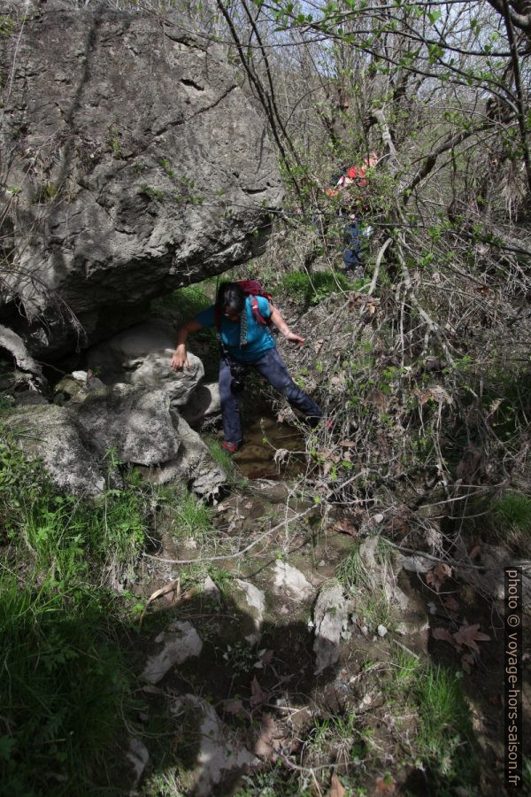 Peu à peu, ce lit passe sur des marches de roche dure, le vallon se transforme en un petit canyon. Mais même les rares parties rocheuses verticales sont faciles à contourner.