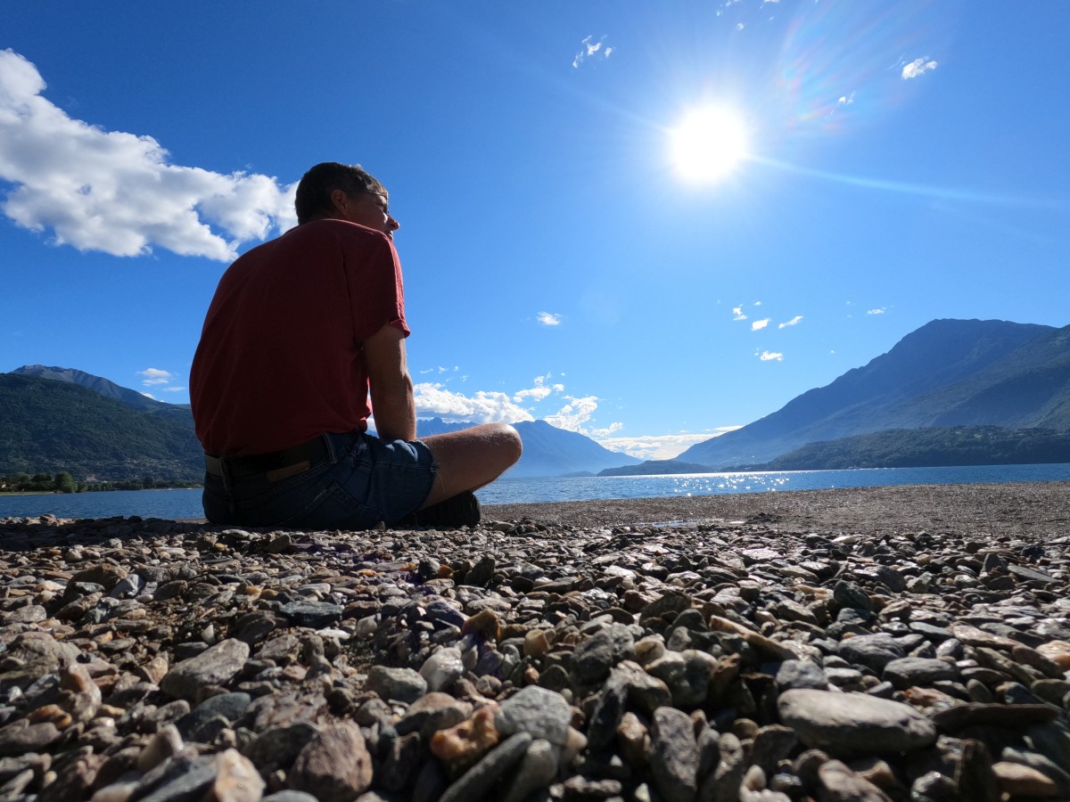 En passant par les Alpes, il faut faire des étapes. Nous visons le camping la Breva que nous connaissons depuis longtemps. Il se trouve dans la partie nord et à l’ouest du du lac. Il a toujours été très agréable, pas trop plein et surtout visité par des campeurs italiens. Or, cette fois-ci, on nous assigne une place un peu terreuse réservé par quelqu’un venant un jour plus tard. Elle est en plein soleil, mais le manque d’arbre est même très bien car il pleut le soir et cela évite le bruit des grosses gouttes sur la tôle du camion. Contrairement à nos deux autres passages, il y a maintenant presque exclusivement des campeurs allemands ce qui enlève beaucoup au charme italien de la basse saison.