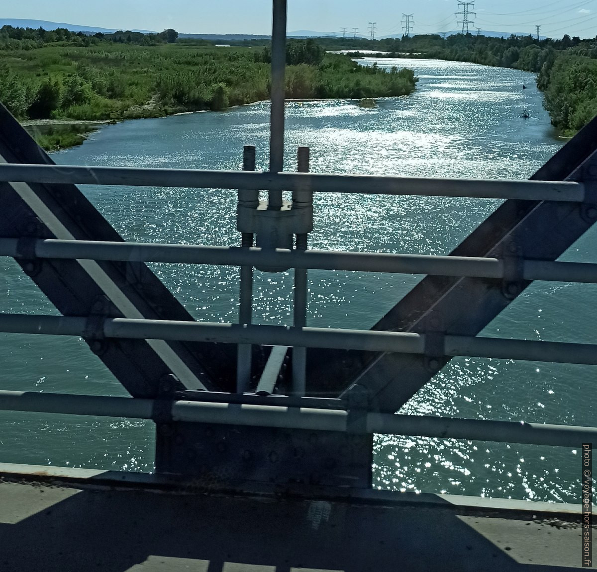 La Durance vue du pont suspendu de Rognonas. Photo © bjodec