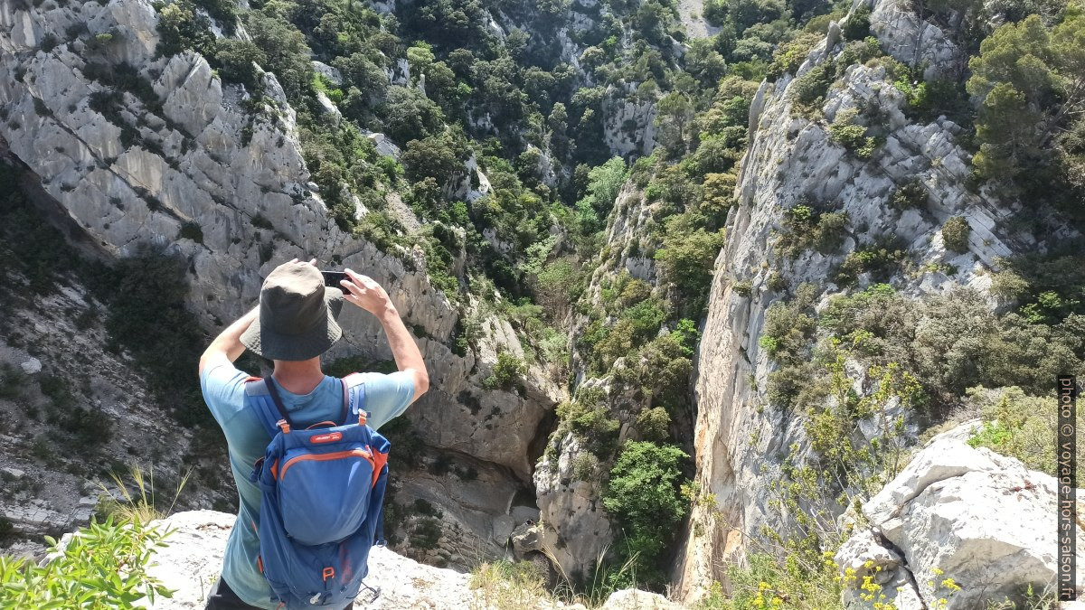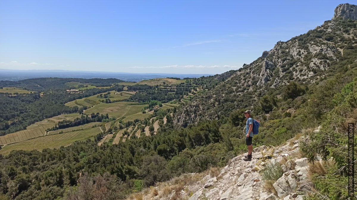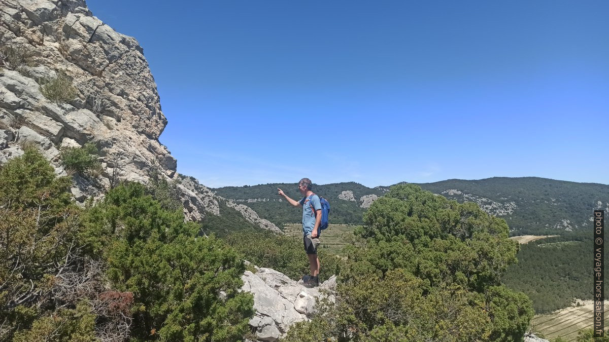André au point de vue sur la montée et sur les gorges du Vallat de Fenouillet. Photo © bjodec
