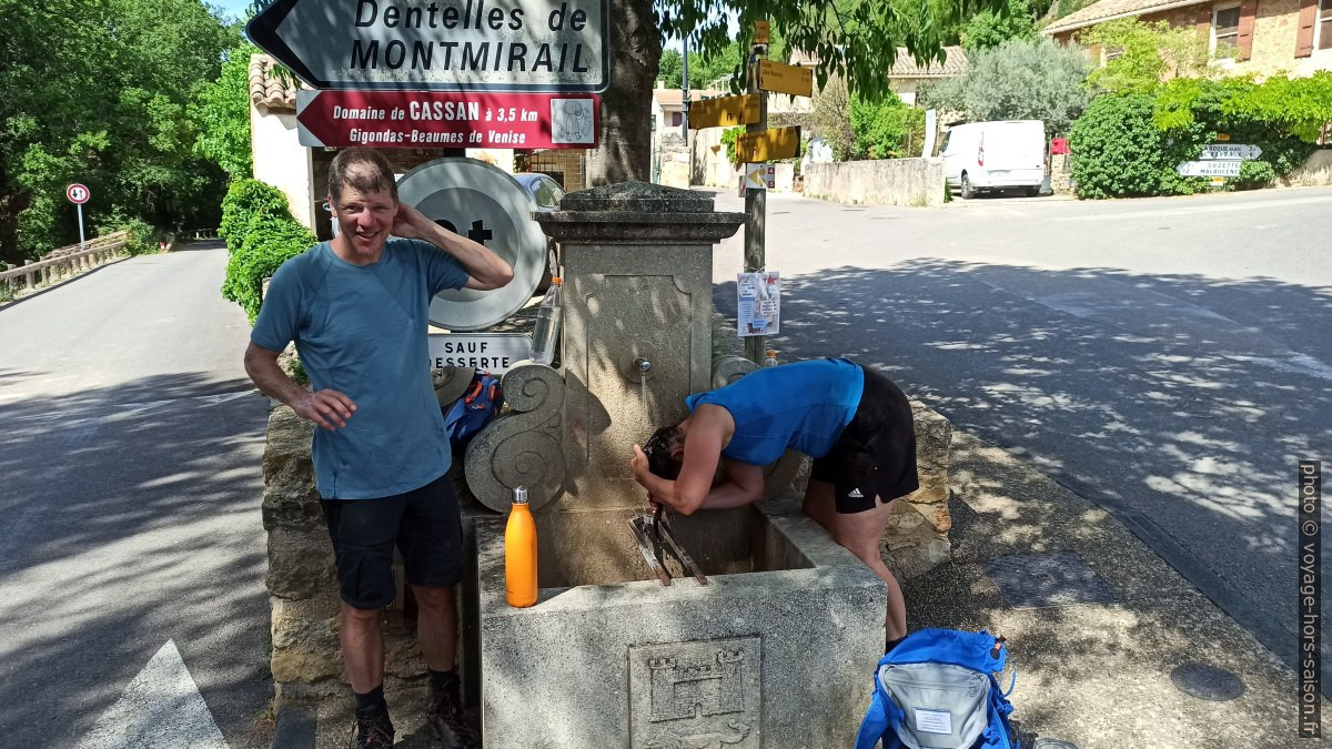 André et Alex se rafraîchissent à la fontaine de Lafare. Photo © bjodec