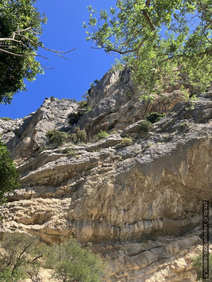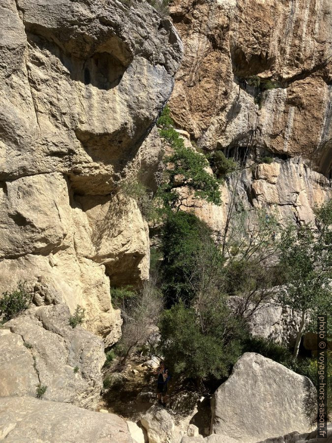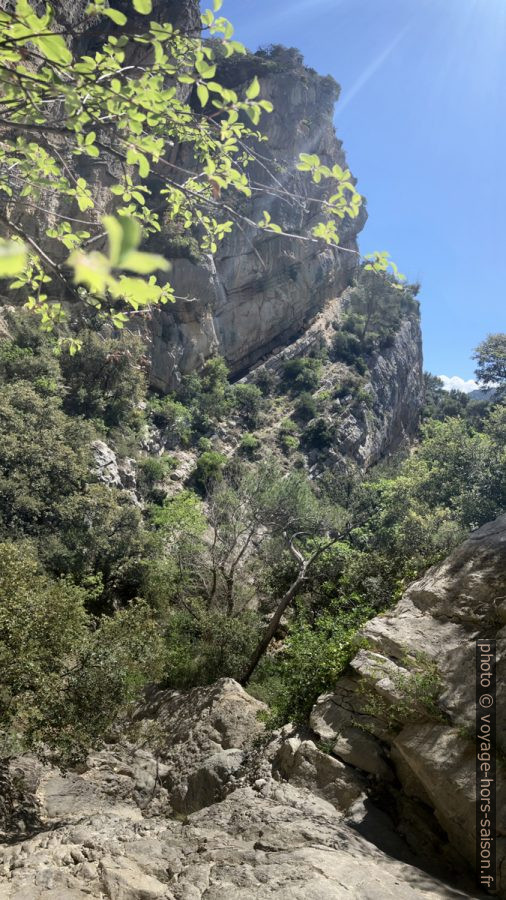 La ballade le long du Vallat du Fenouillet est en tout cas plaisante car très diverse. Nous entendons des voix, nous ne sommes pas les seuls ici. Il y a aussi des grimpeurs haut dans les parois rocheuses.