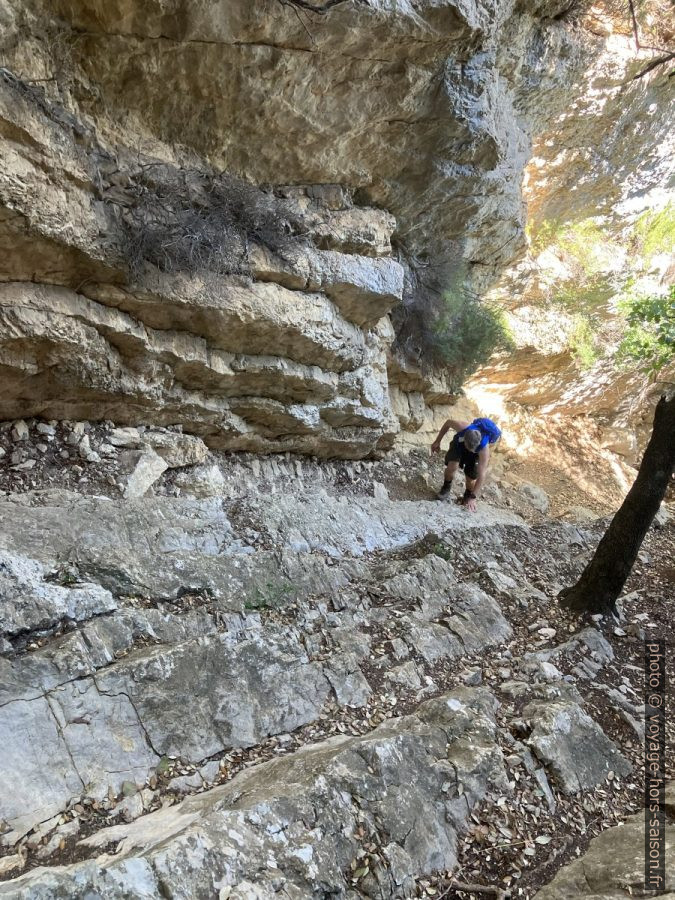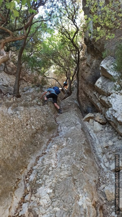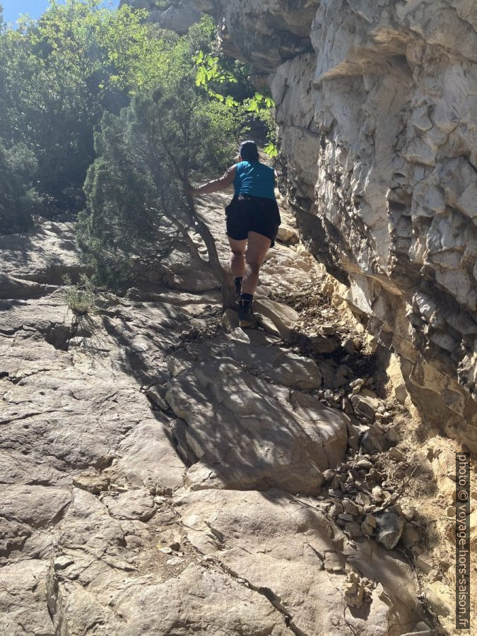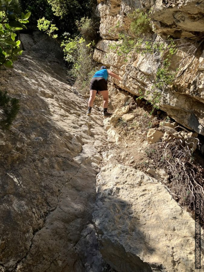 Montée de la deuxième partie de la dalle inclinée au sud de la cascade du Vallat de Fenouillet. Photo © André M. Winter
