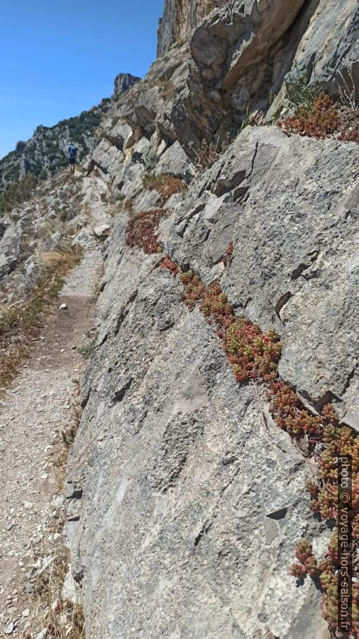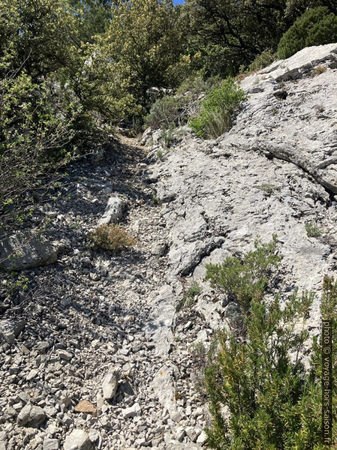 Mais le Pas de la Chèvre marque aussi une perturbation dans les strates. Il faut descendre de quelques mètres pour passer une zone d’éboulis.