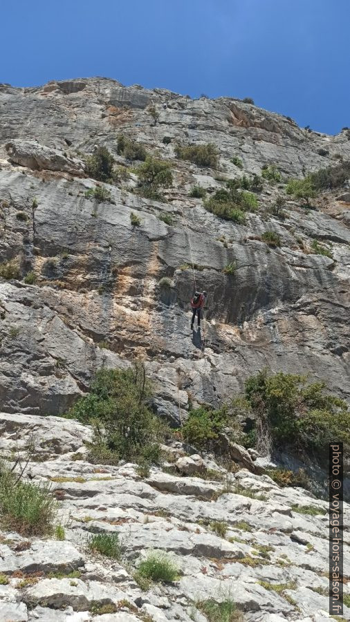 Au-dessus de nous des grimpeurs qui transpirent fort cette belle journée de début mai.
