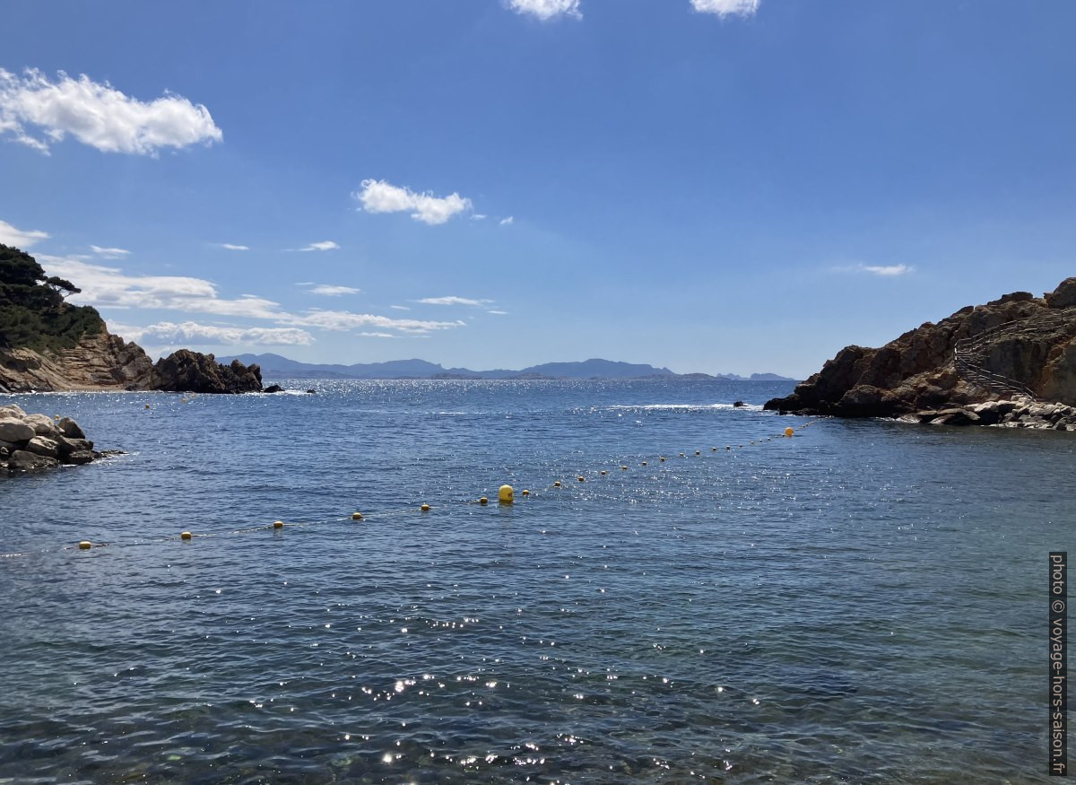 Dans la calanque se trouvent d’autres gens qui sont nagés vers les quelques rochers devant.