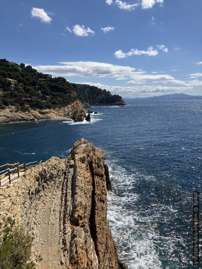 Comme en 2011, un sentier assez bien aménagé monte là où l’on ne peut pas longer la falaise côté mer. Il fait passablement chaud.