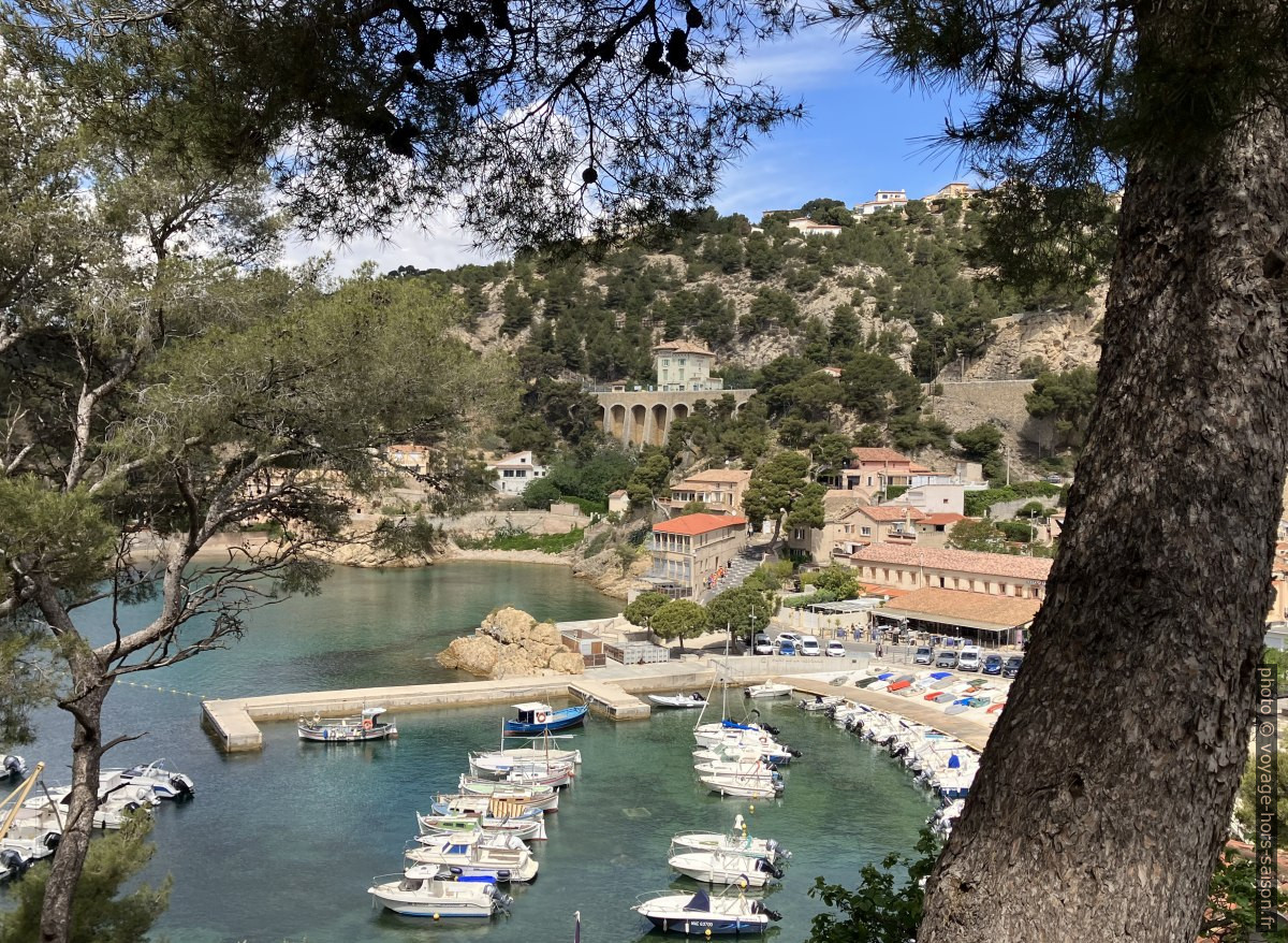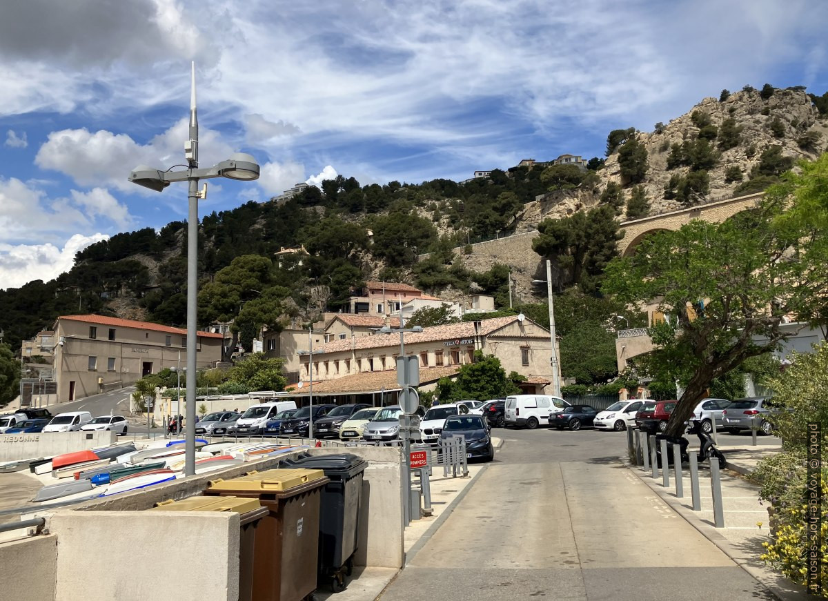 Se rendre avec notre Trafic aménagé au Port de Figuières est déjà un défi, mais s’y garer en plein mois de mai est un exploit. Nous réussissons. Ce n’est pas pour rien que nous conseillons de faire cette randonnée en train à partir de Marseille ou à partir de Port-de-Bouc.