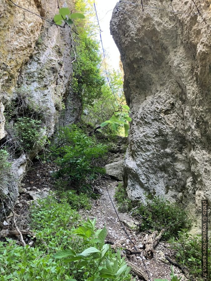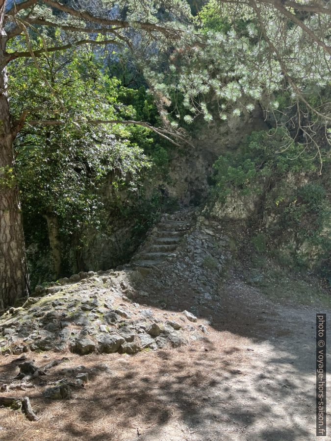 Derrière la source se trouve des minuscules gorges, des marches y montent, mais cela ne mène nulle part.