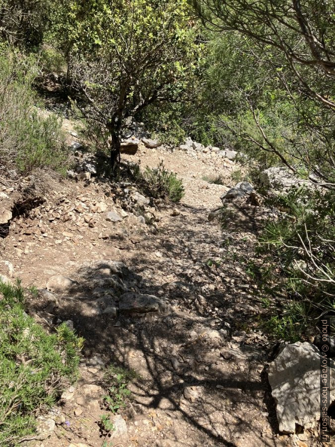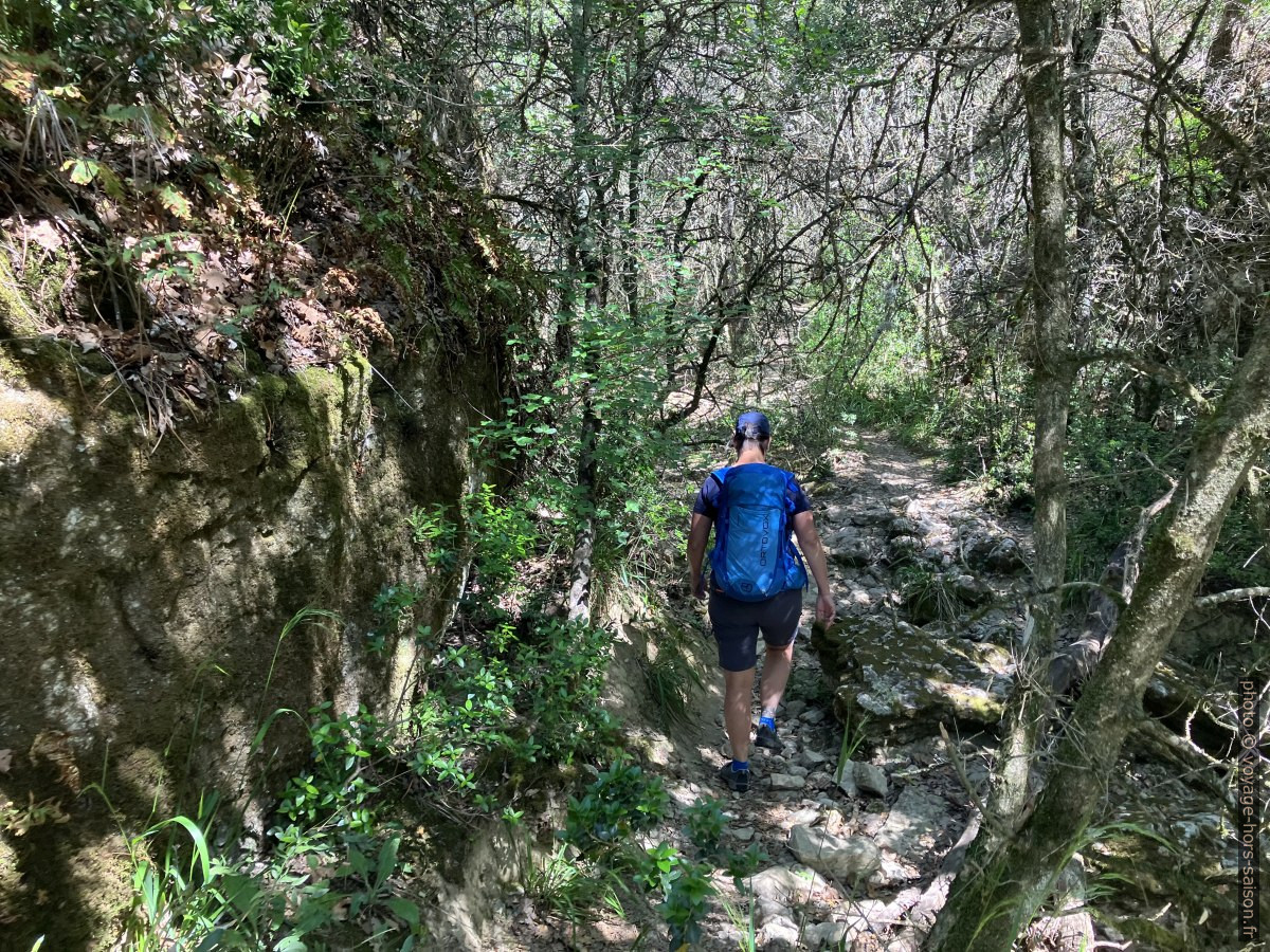 L’eau est rarement un obstacle car les bassins sont petits. Par contre la végétation cherche l’eau et elle se trouve logiquement aussi au fond du vallon. Parfois c’est elle qui obstrue le passage. Ici nous sommes sur un contournement sur la rive gauche.