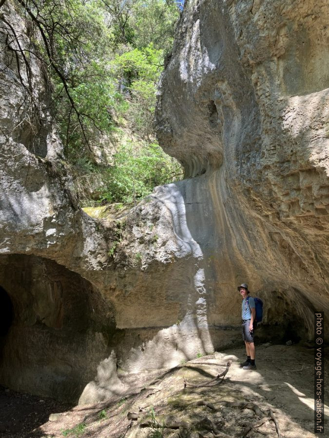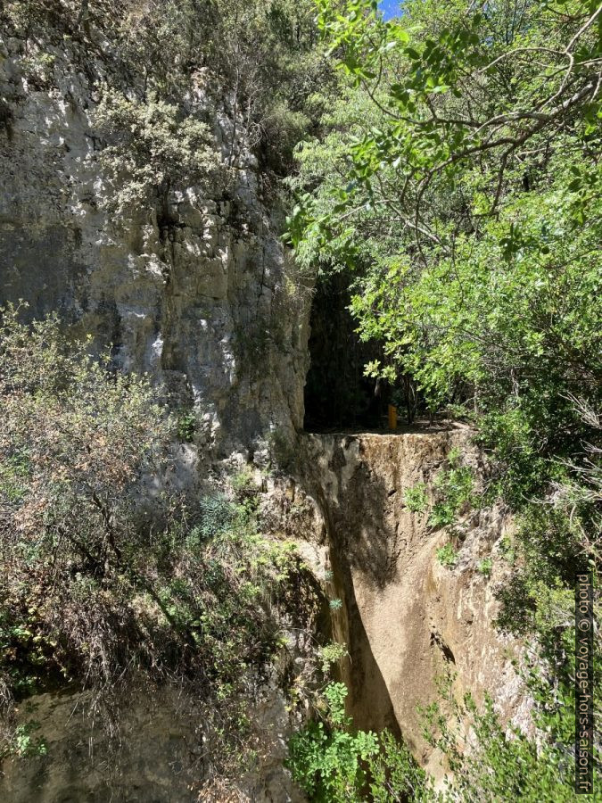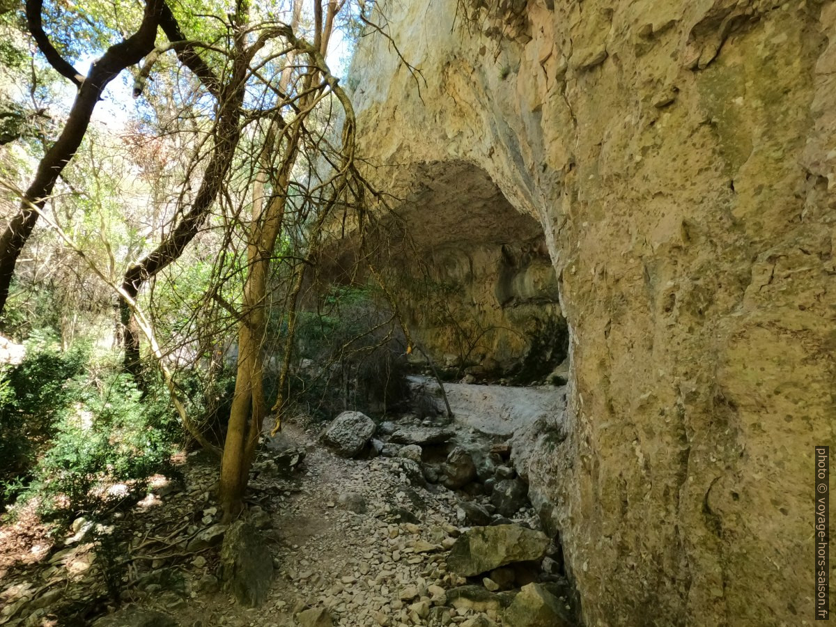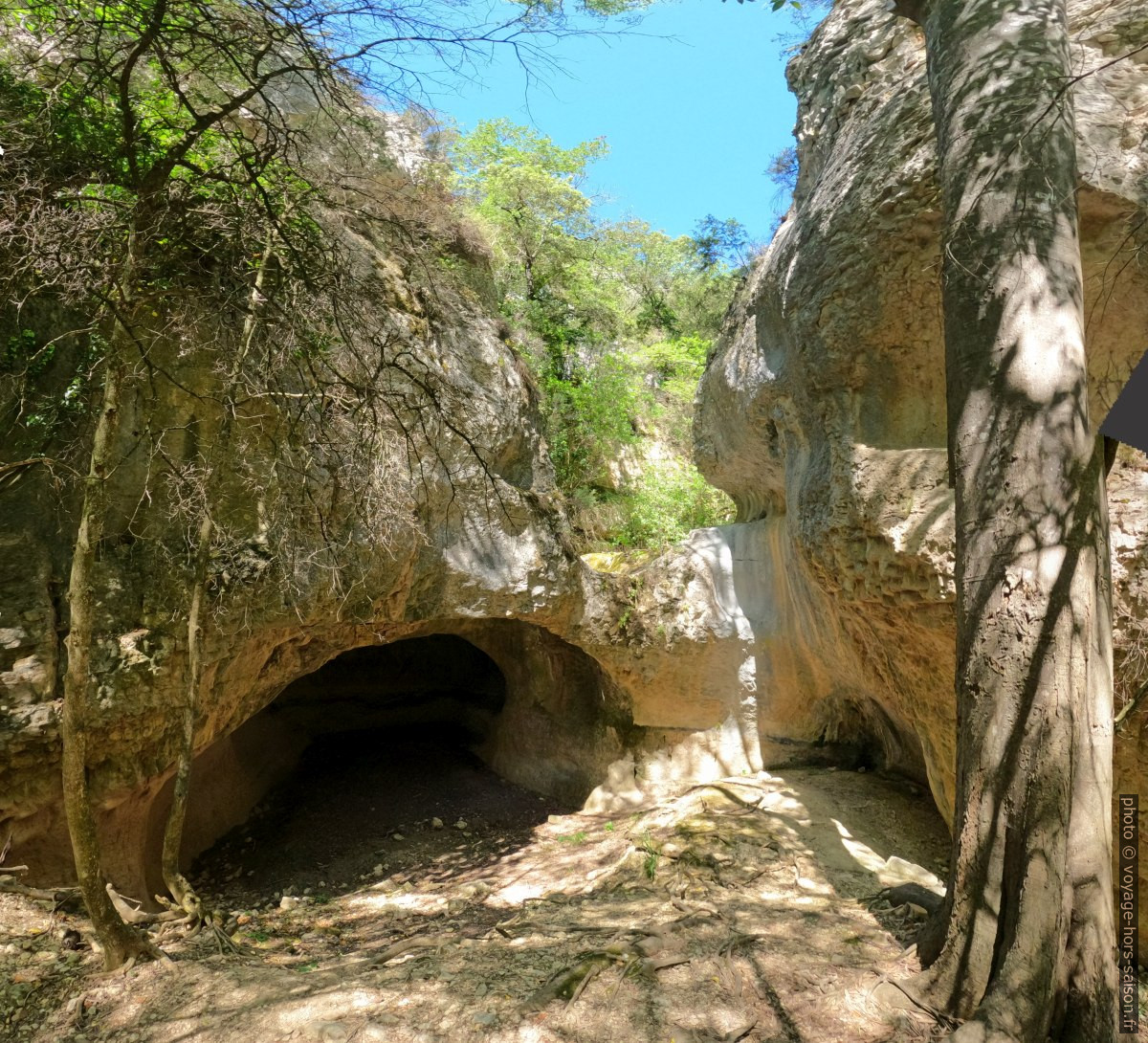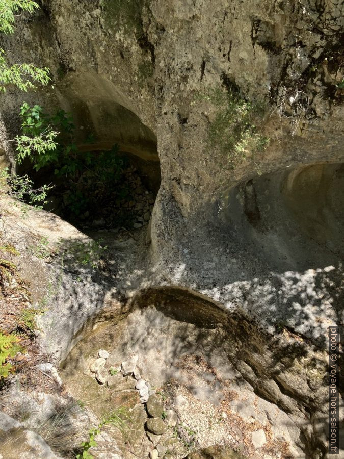 Les Gorges des la Véroncle ont beaucoup de grandes baumes qui se trouvent directement au niveau du lit du ruisseau. Celle-ci est murée au fond, elle servait donc d’étable ou de hangar.