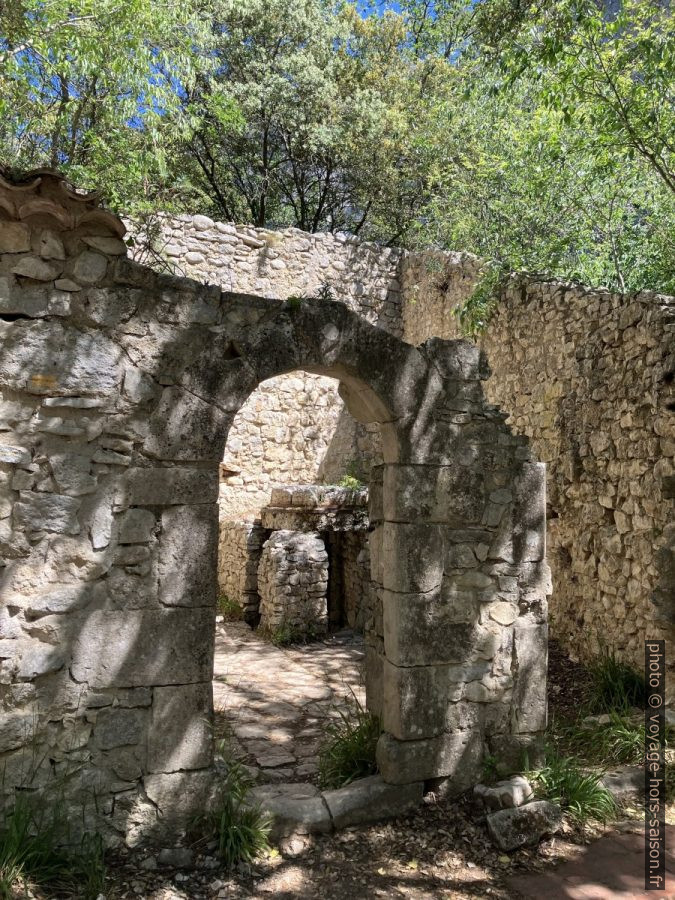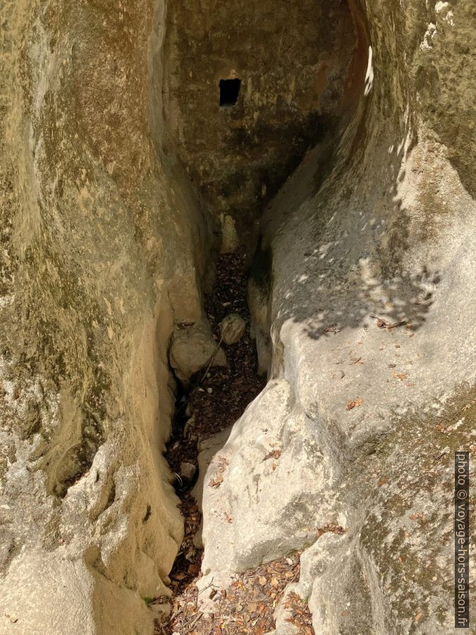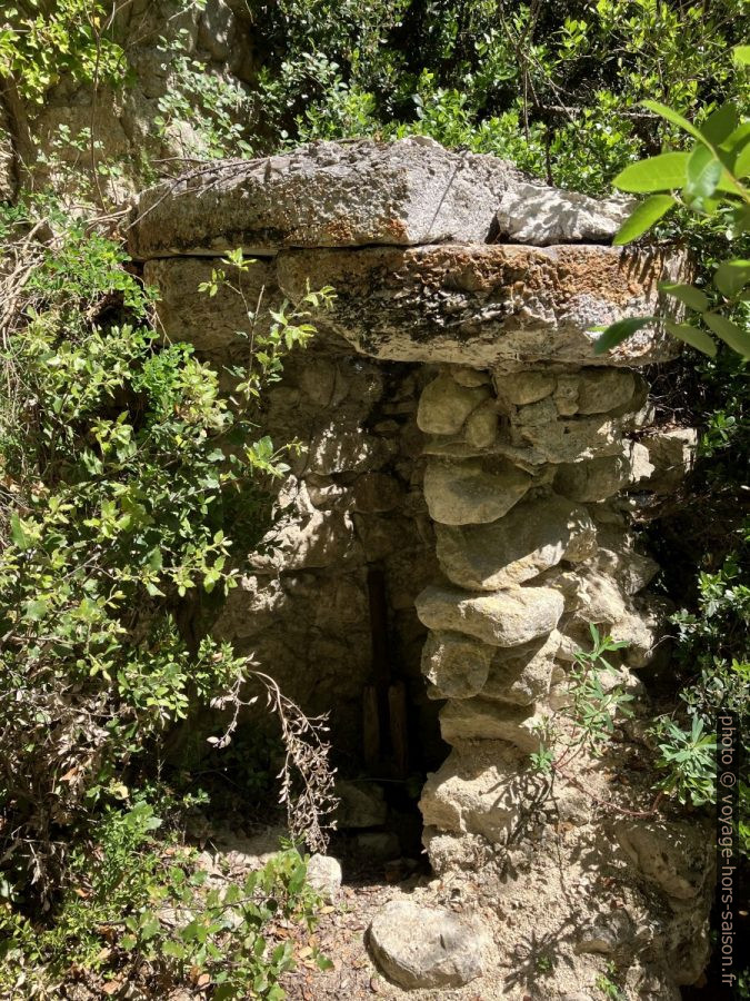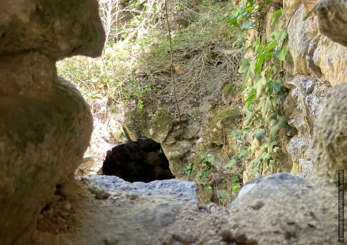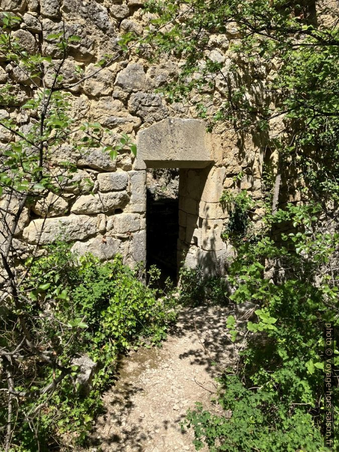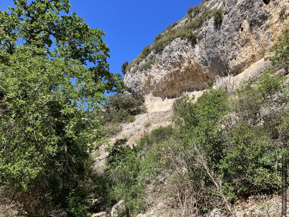 Les Gorges des la Véroncle ont beaucoup de grandes baumes qui se trouvent directement au niveau du lit du ruisseau. Celle-ci est murée au fond, elle servait donc d’étable ou de hangar.