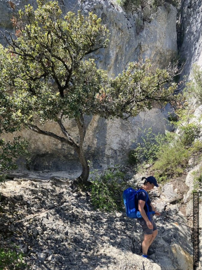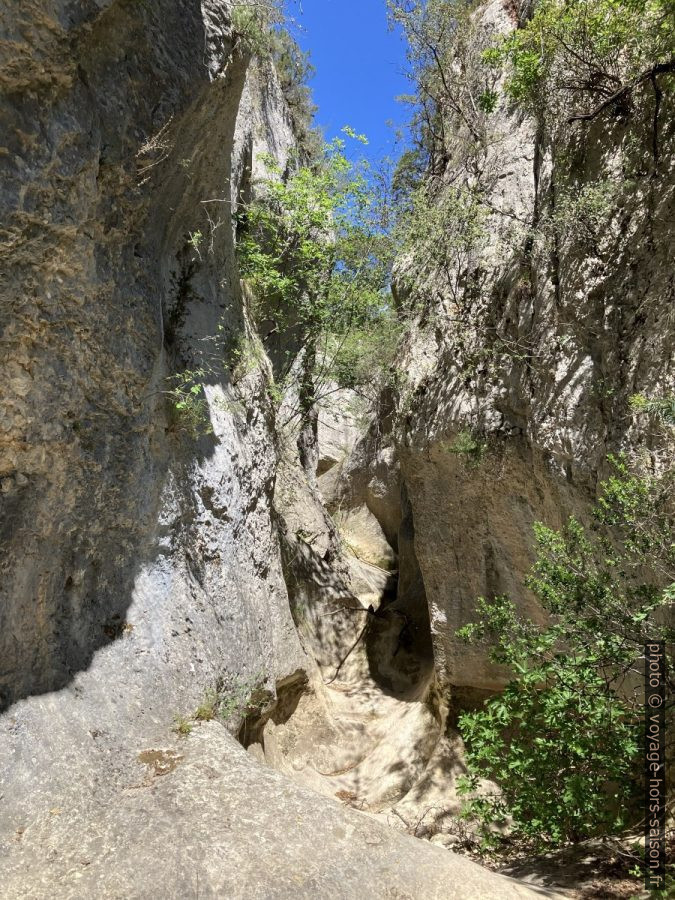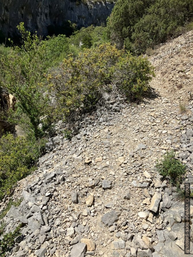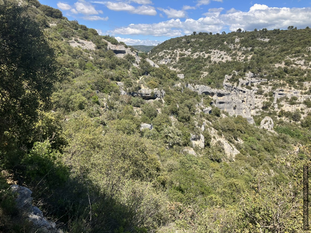 Cette fois-ci, le détour est long et on prend aussi beaucoup de hauteur. On ne revient donc pas à plat dans les gorges, on descend d’abord par paliers.