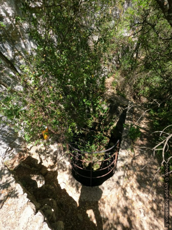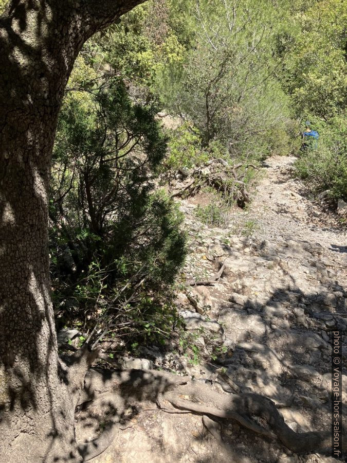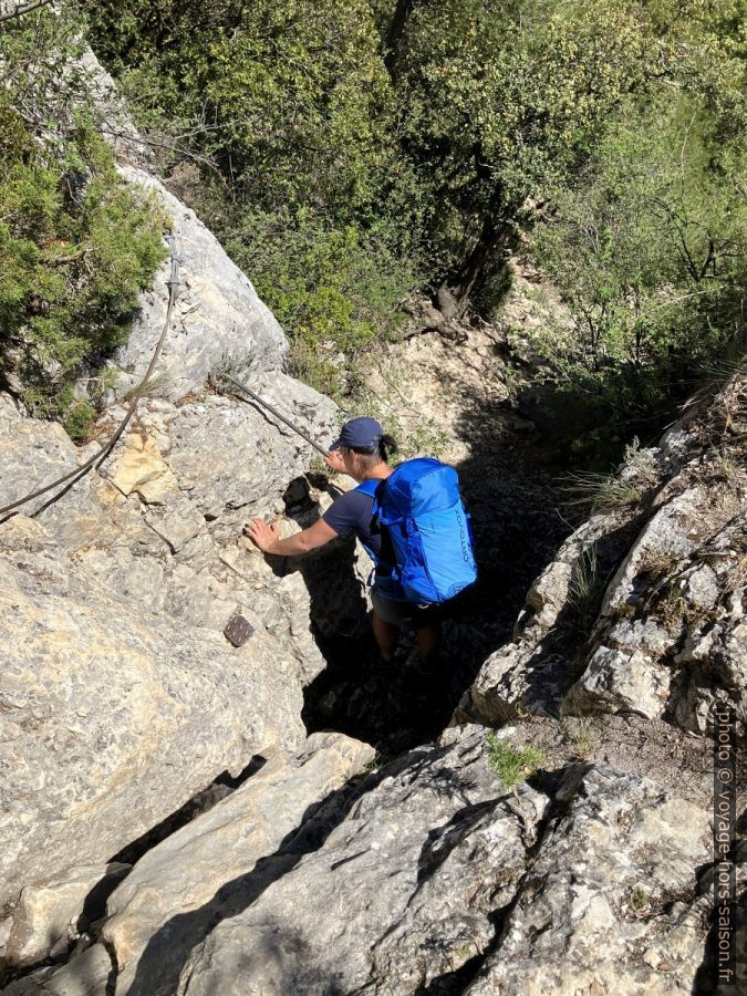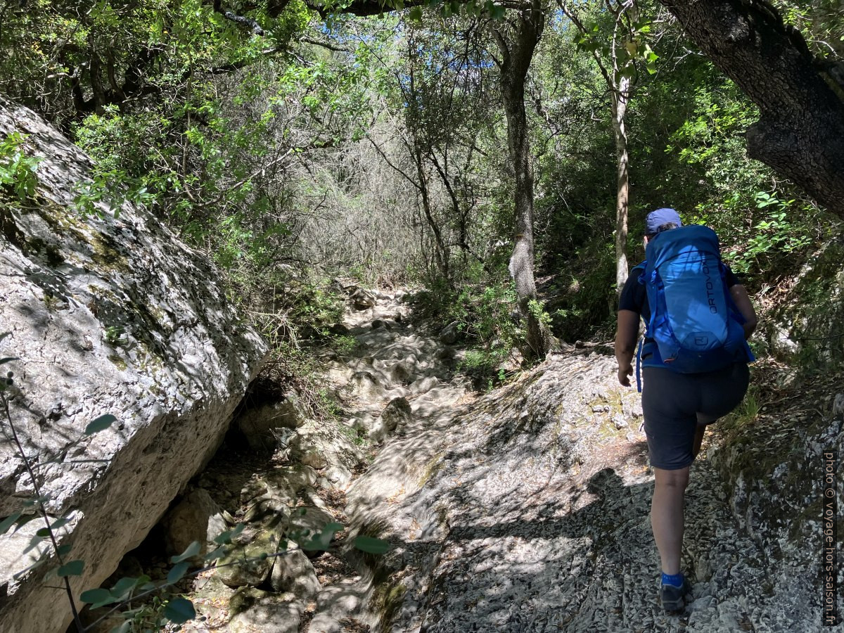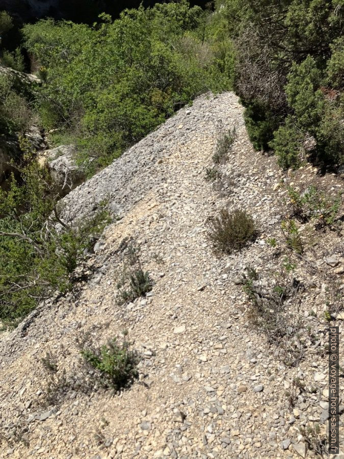 Cette fois-ci, le détour est long et on prend aussi beaucoup de hauteur. On ne revient donc pas à plat dans les gorges, on descend d’abord par paliers.