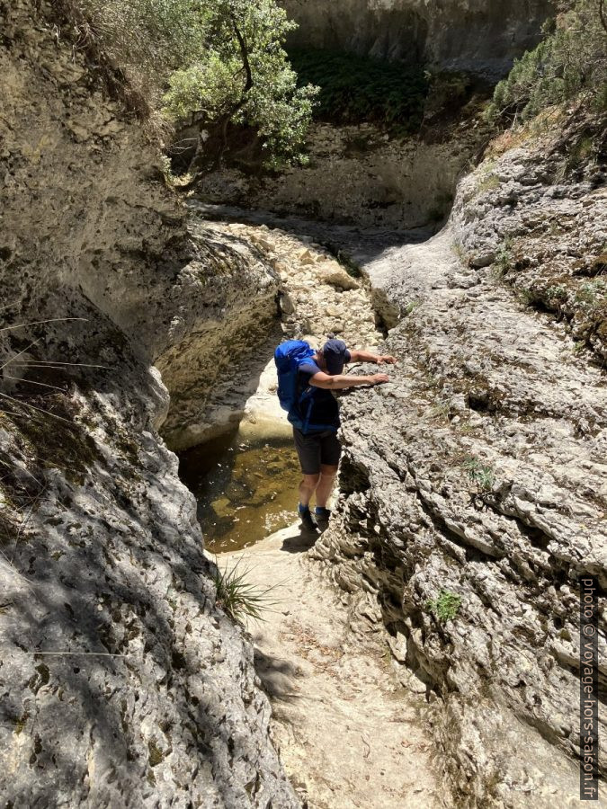 Parfois on butte sur un passage exigeant de l’escalade avec au moins une corde installée d’en haut. Ce serait trop de logistique. On se contente d’aller voir là où l’on peut. Cela nous fait faire pas mal d’allers-retours.