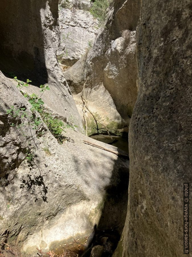 On retourne à la première possibilité dans les gorges parce qu’il fait très chaud sur le plateau aride l’après-midi. On y trouve encore un peu d’ombre avant de devoir retourner les quelques 600 mètres sur un route plate au parking.