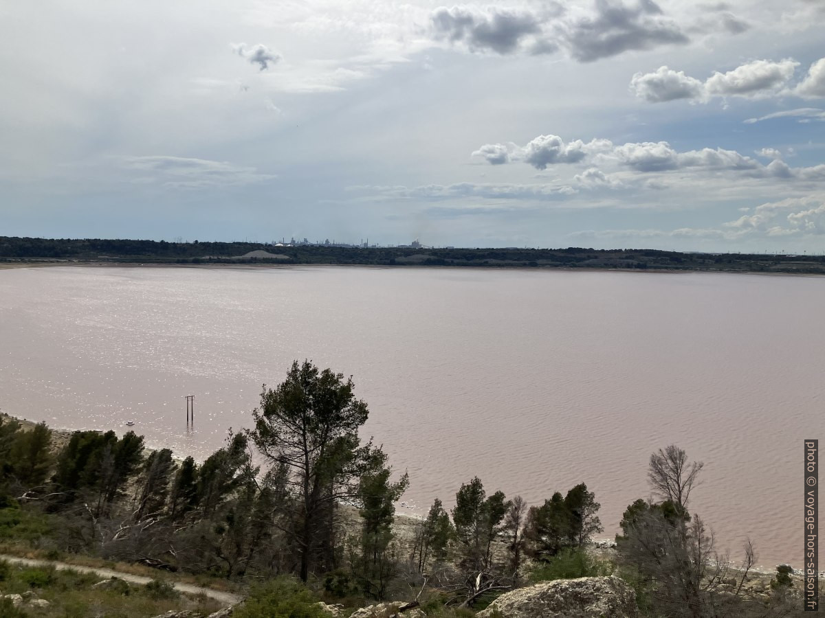 L’étang de Lavalduc coloré en rose par la saumure. Photo © André M. Winter