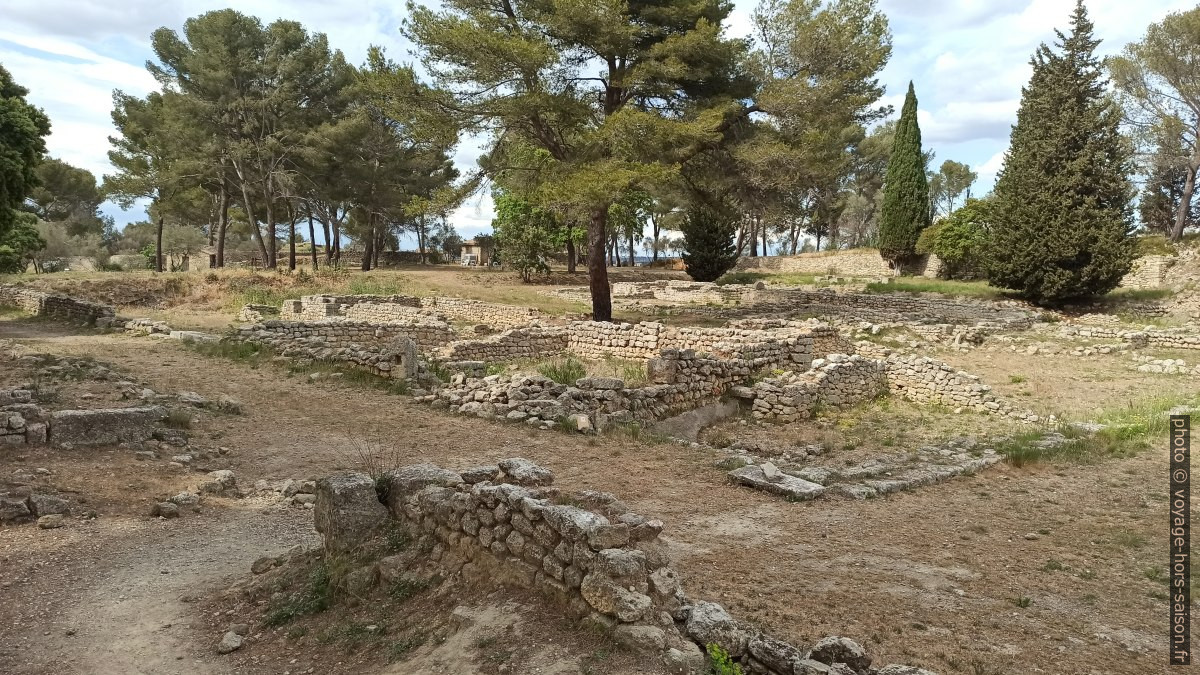 Dans la partie sud de la colline se trouvent aussi des restes de la ville haute. Cette partie semble avoir été habite que jusqu’à la fin du 2e siècle avant notre ère quand les Romains rasent le site.