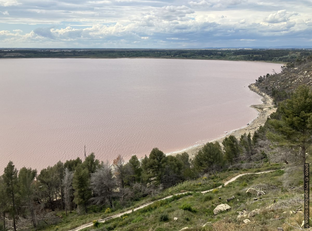 L’Étang de Lavalduc est omniprésent. Sa couleur rose provient de crustacés qui sont les rares êtres vivants à pouvoir survivre dans le fort taux de salinité. Ce sel provient de dépôts naturels dans les Alpes près de Manosque. On y a délavé le sel pour pour y stocker du gaz naturel. Le taux de sel atteint ici des records qui tuent parfois même ces crusacés.