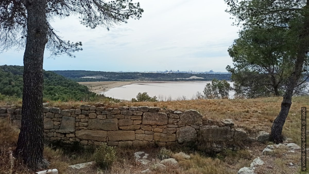 Mur hellénistique du saillant sud de l’oppidum de Saint-Blaise et le Lac de Lavalduc. Photo © bjodec