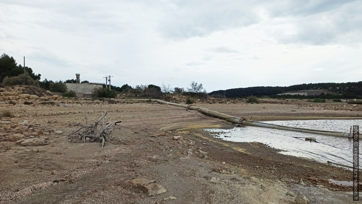 Tuyau d’aspiration de l’eau du Lac de Lavalduc par la station de dépotage de bisulfite de sodium. Photo © bjodec