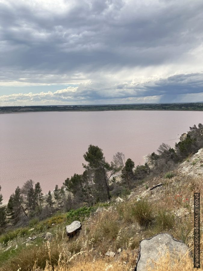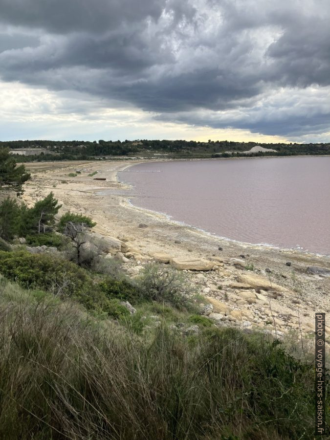 L’étang de Lavalduc coloré en rose par la saumure. Photo © André M. Winter