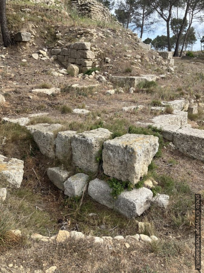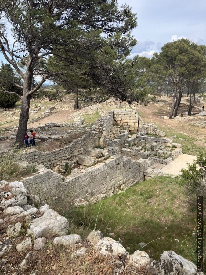 Dans la partie sud de la colline se trouvent aussi des restes de la ville haute. Cette partie semble avoir été habite que jusqu’à la fin du 2e siècle avant notre ère quand les Romains rasent le site.