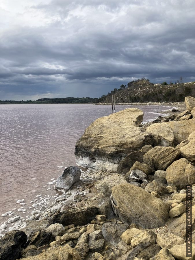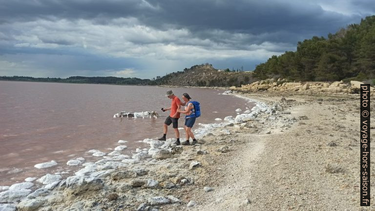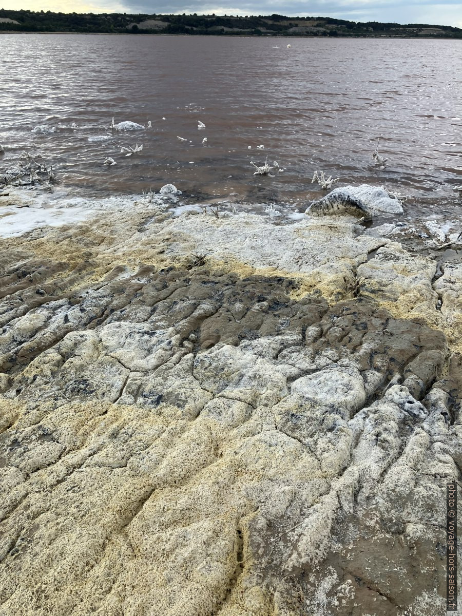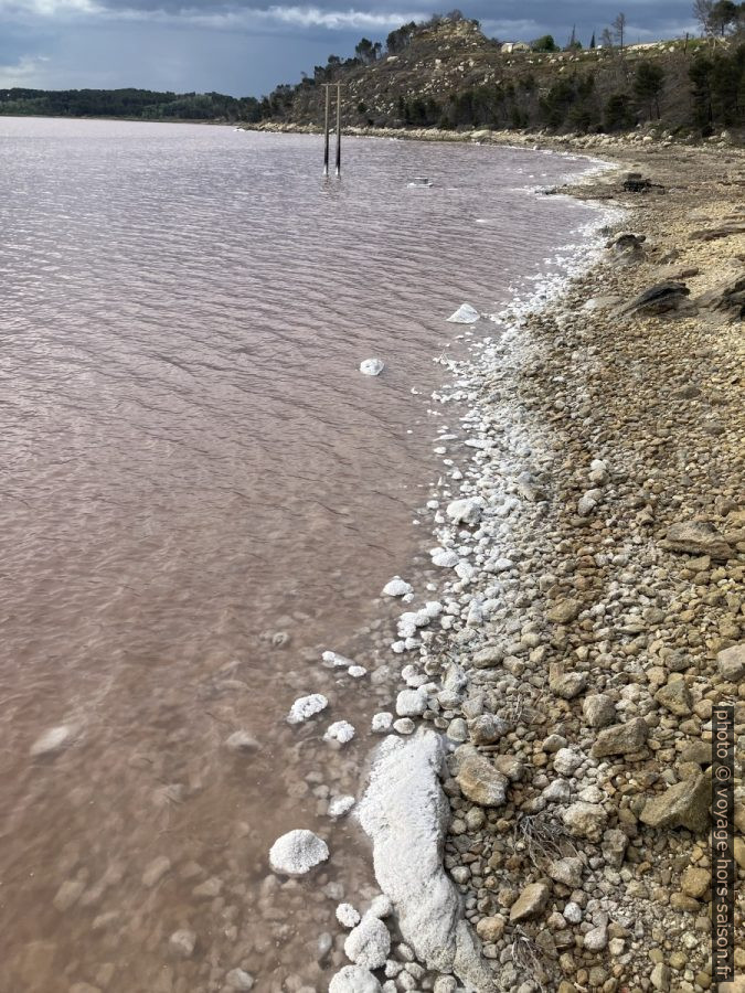L’eau rose de saumure et du sel cristallisé sur le rivage de l’étang de Lavalduc. Photo © André M. Winter