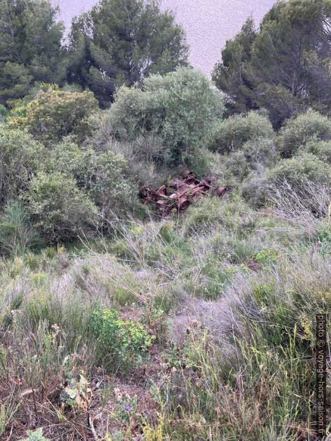 Le feu dévoile des pêchés d’antan quand on jetait simplement les voitures dans un fossé. Pour arriver ici, cette carcasse devait traverser tout le plateau au sud du site de St. Blaise.