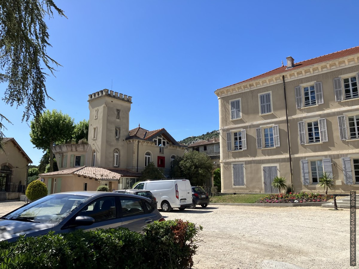 On vient du camping municipal, mais on commence la randonnée vraiment devant la mairie. Cette grande maison n’est autre que le château des derniers seigneurs du village.