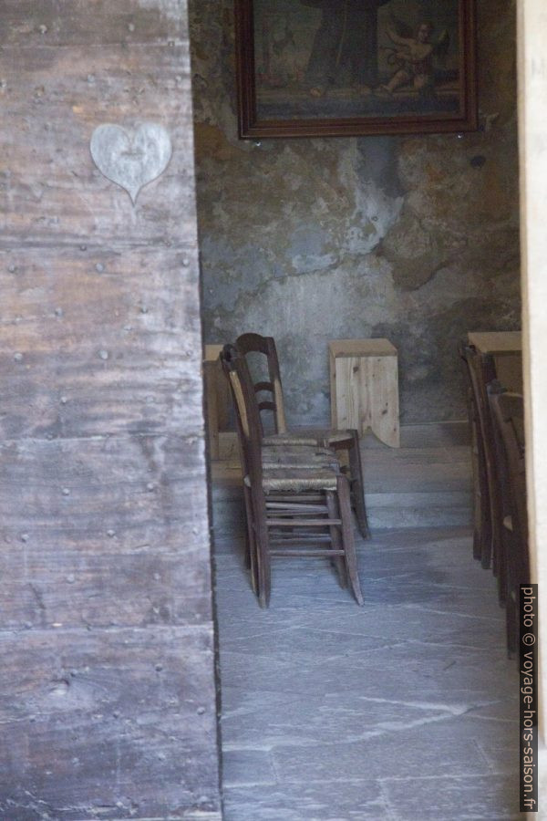 L’intérieur ne se voit qu’à travers l’ouverture dans l’abside.