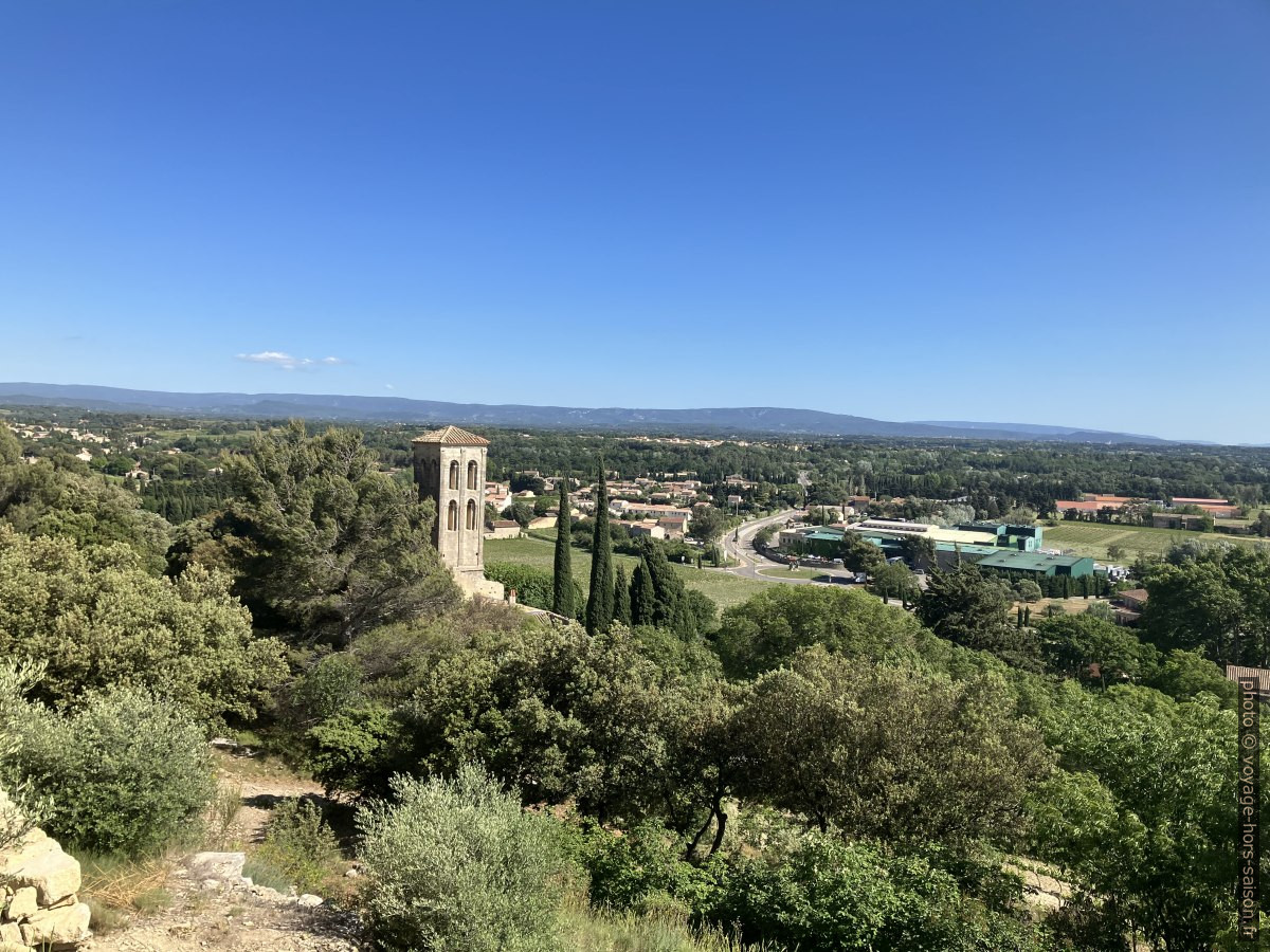 On a cependant quelques beaux sites sur notre tour. Le premier est l’église d’un hameau maintenant intégré dans la commune de Beaumes-de-Venise. La Chapelle d’Aubune date sous cette forme du 12e siècle. Elle est construite sur une source qui attira déjà les romains. Son clocher est particulièrement soignée et la rend unique dans son genre pour une chapelle de hameau.