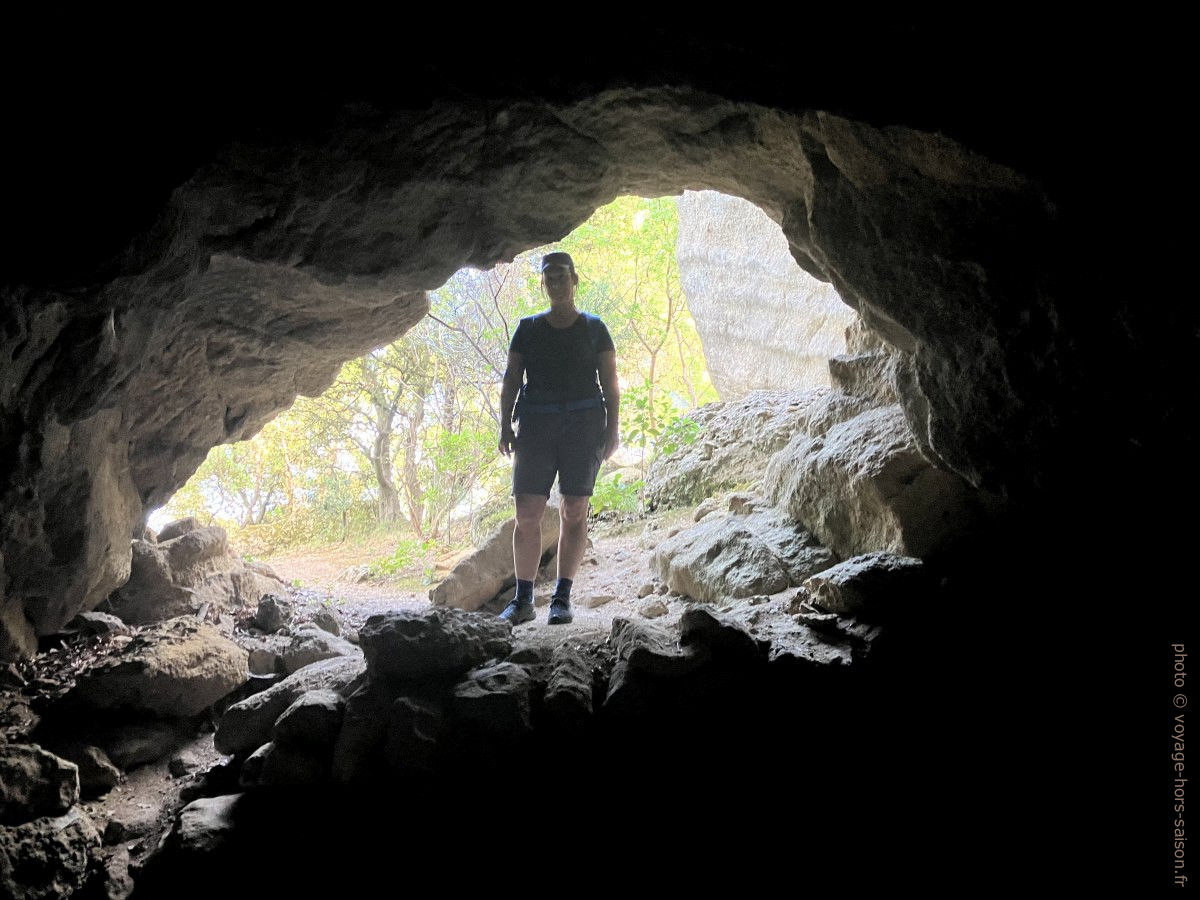 Alex dans l’entrée de la quatrième Grotte d’Ambrosi. Photo © André M. Winter