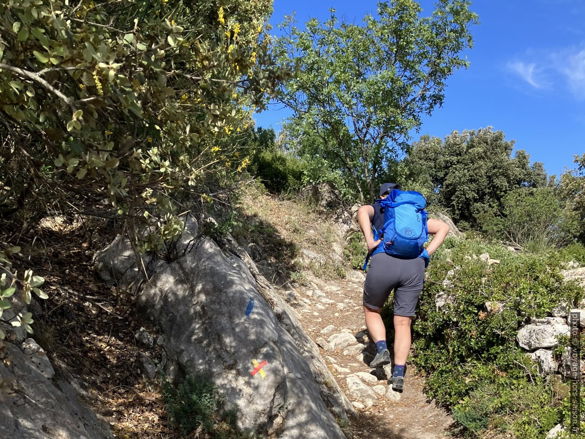 Dans la partie est se trouve le Castellas de Durban, un château du 12e siècle très en ruine. Une association tente de stabiliser et de relever une partie des murs, mais les travaux durent des années et l’accès reste barré pour des raisons de sécurité. On entame donc la descente qui est plus rapide que la montée. C’est aussi un vieux chemin.