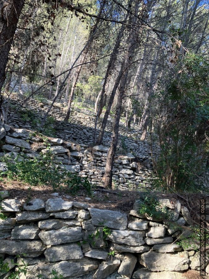 Ici aussi se trouvent des terrasses qui sont reconquises par la forêt. Elle datent du 18e et du 19e siècle.