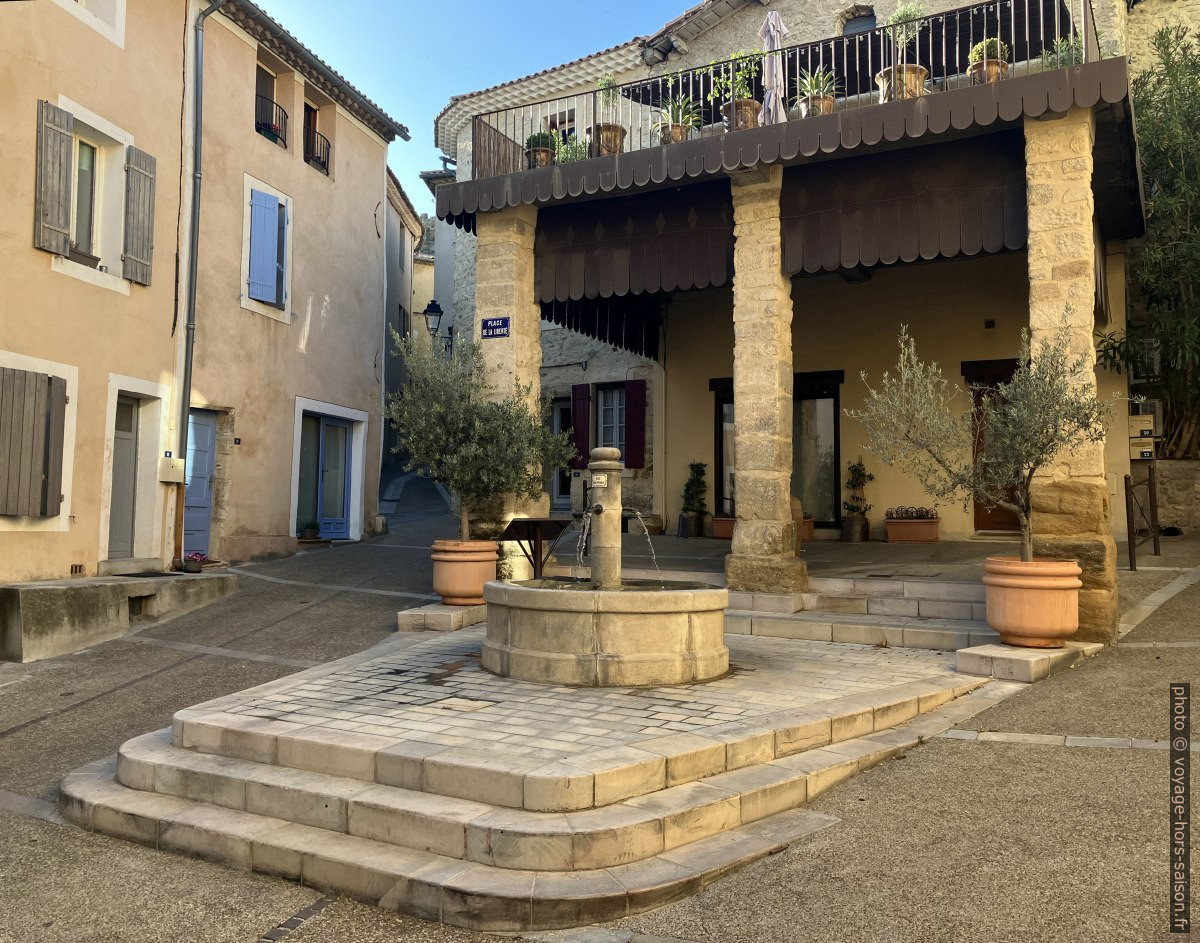 Fontaine et halle place de la Liberté à Beaumes de Venise. Photo © André M. Winter